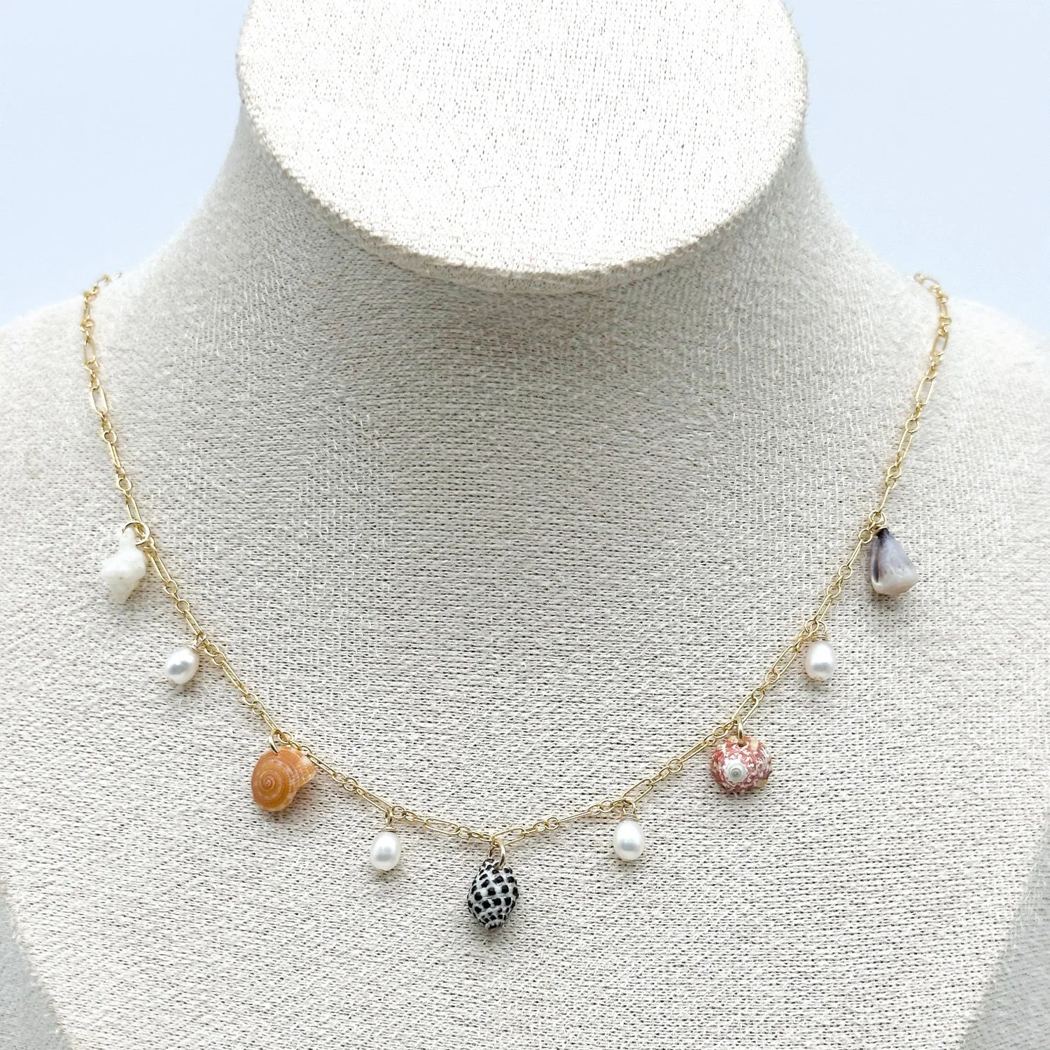 Bring the sea with you wherever you go with our best-selling gorgeous necklace featuring shells hand picked on the North Shore of O'ahu. This necklace is 14K gold fill and made by hand in Hale'iwa, Hawai'i.